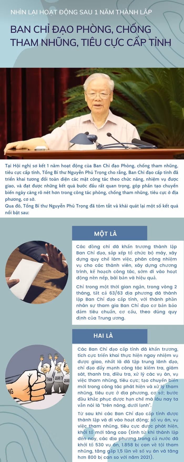Ngày 19/6 vừa qua, Hội nghị sơ kết 1 năm hoạt động của Ban Chỉ đạo phòng, chống tham nhũng, tiêu cực cấp tỉnh, với sự có mặt đông đủ của tất cả các đồng chí thành viên trong Ban Chỉ đạo Trung ương về phòng, chống tham nhũng, tiêu cực và thành viên Ban Chỉ đạo cấp tỉnh, với hơn 2.500 đại biểu, được kết nối trực tuyến từ Trung ương đến địa phương.