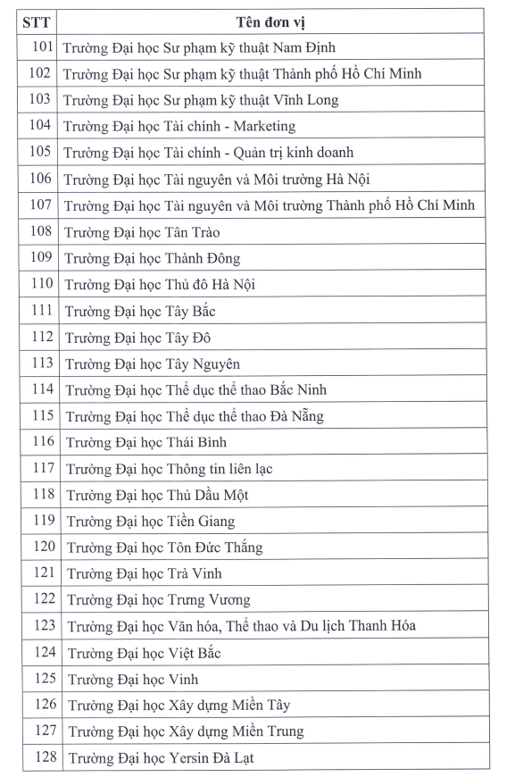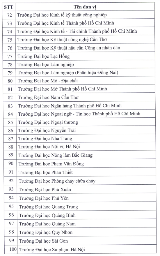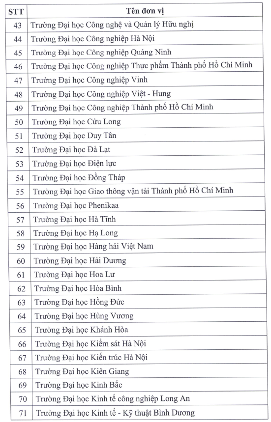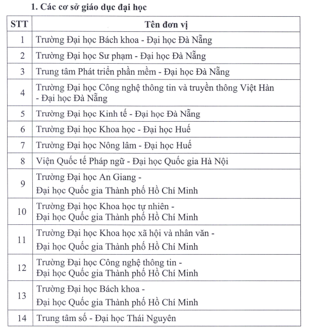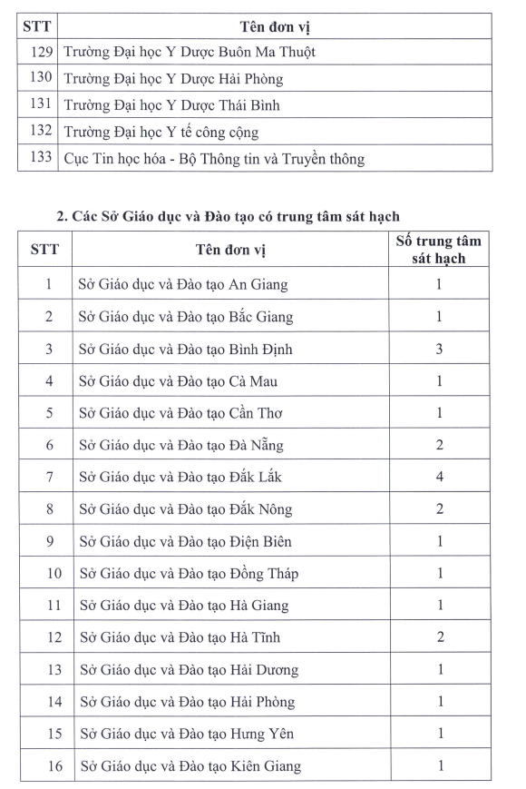 Cụ thể, theo thông báo số 144/TB-QLCL, tính đến ngày 7/2/2023 đã có 133 cơ sở giáo dục đại học và 42 Sở Giáo dục và Đào tạo có trung tâm sát hạch được Bộ Giáo dục và Đào tạo được phê duyệt tổ chức thi, cấp chứng chỉ ứng dụng công nghệ thông tin.