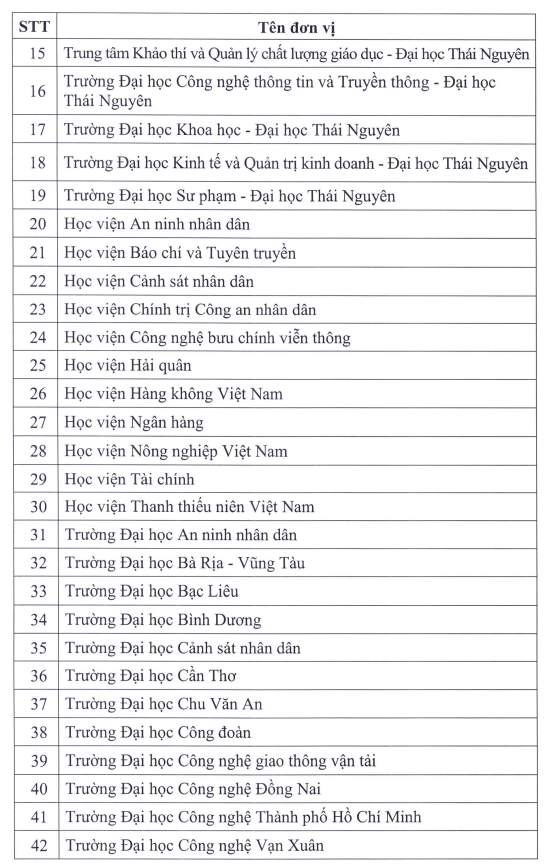 Cùng với danh sách này, Bộ Giáo dục và Đào tạo cũng công bố danh sách các đơn vị được tổ chức thi, cấp chứng chỉ năng lực ngoại ngữ của nước ngoài.
