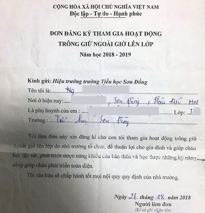 Nói là tiếng Anh tự nguyện, thỏa thuận học phí, nhưng thực chất phụ huynh chỉ có tham gia hay không và có sẵn mẫu tham gia tự nguyện với mức học phí áp đặt”.