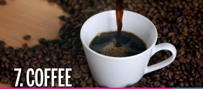 7. Cà phê: Một nghiên cứu từ các chuyên gia dinh dưỡng cho thấy những người có thể trạng bình thường, nếu uống 1 - 2 ly cà phê mỗi ngày có tỷ lệ trao đổi chất cao hơn 16% so với người không uống cà phê.