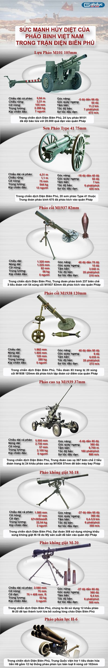 Chiến thắng Điện Biên Phủ cho thấy sức mạnh của pháo binh Việt Nam tuy còn non trẻ nhưng đã giáng những cơn bão lửa vào quân Pháp khiến cứ điểm tưởng chừng như bất khả chiến bại phải quy hàng. Cùng xem những vũ khí mà pháo binh Việt Nam sử dụng trong trận đánh này.