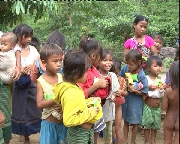 | Trao quà cho người Rục, và bản Lòm Quảng Bình (Ảnh: Lê Phạm) |