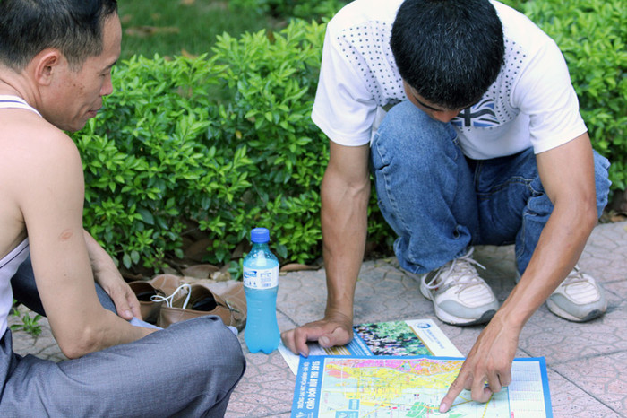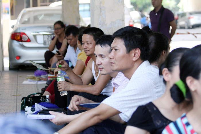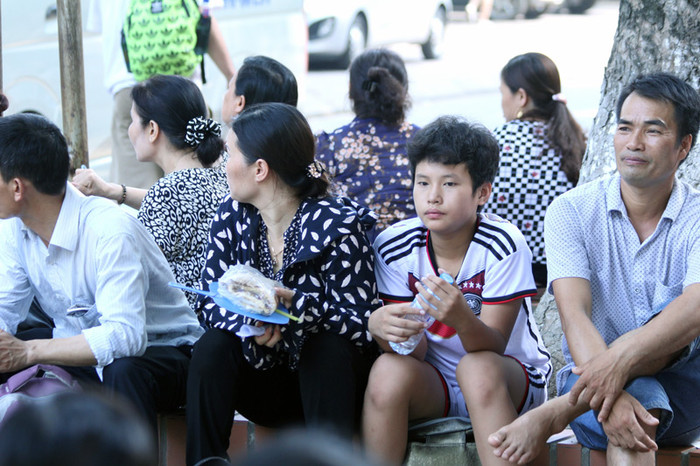 | Bên ngoài, dưới trời nắng nóng rất nhiều phụ huynh và người nhà thí sinh đứng, ngồi chờ mướt mồ hôi. |