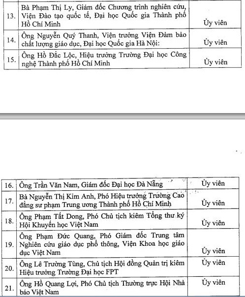 | Danh sách 26 thành viên của Hội đồng Quốc gia Giáo dục và Phát triển nhân lực nhiệm kỳ 2016-2021 (Ảnh chụp màn hình) |