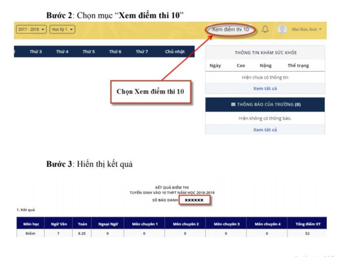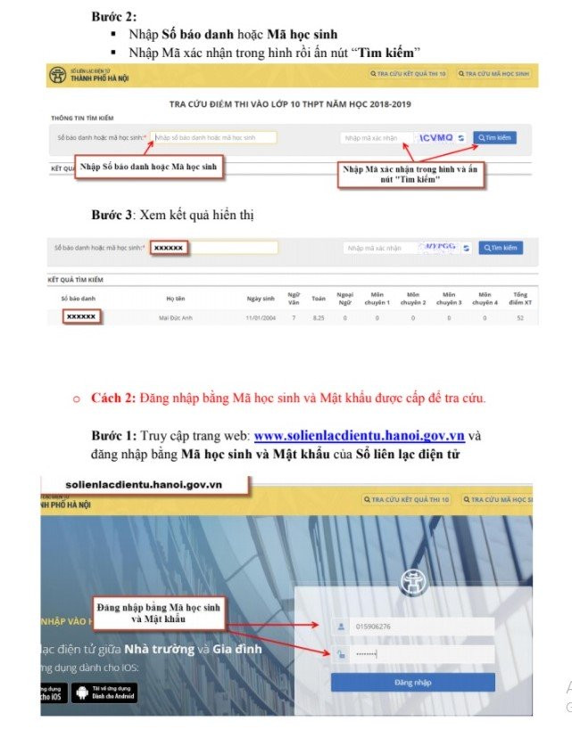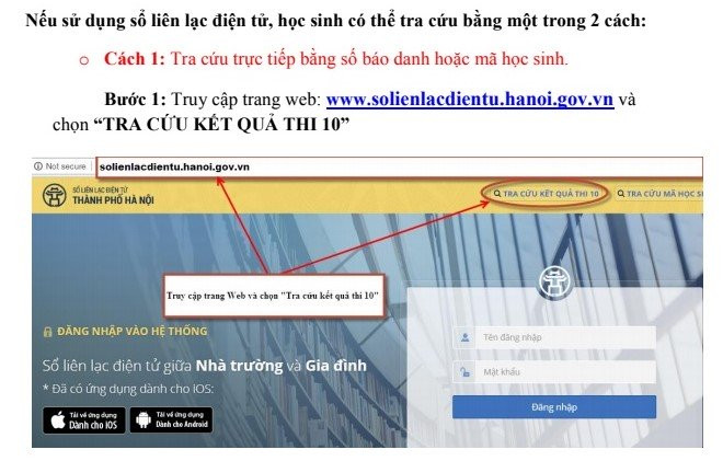 Học sinh có thể vào Cổng thông tin điện tử Sở Giáo dục và Đào tạo Hà Nội: www.hanoi.edu.vn hoặc vào sổ liên lạc điện tử học sinh: www.solienlacdientu.hanoi.gov.vn