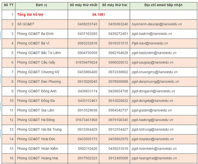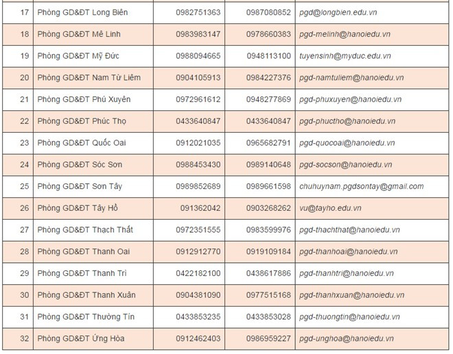 Dưới đây là danh sách các số điện thoại đường dây nóng của Sở GD&ĐT Hà Nội công bố: