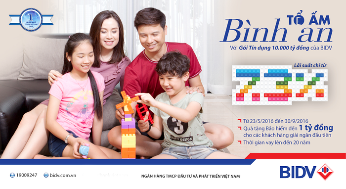 Nhằm hỗ trợ tích cực, hiệu quả cho khách hàng cá nhân vay nhu cầu nhà từ 09/05/2016 đến 30/09/2016, Ngân hàng TMCP Đầu tư và Phát triển Việt Nam - BIDV triển khai Chương trình “Tổ ấm Bình An 2016” với nhiều ưu đãi hấp dẫn.