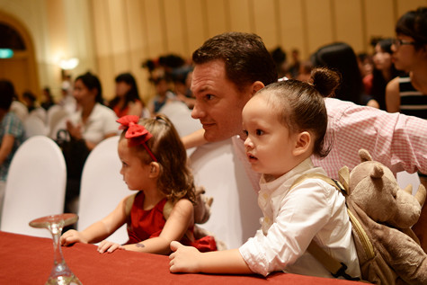 Hai thiên thần bé nhỏ của ca sĩ Hồng Nhung đã ngay lập tức thu hút được sự chú ý của tất cả các khách mời có mặt. Ca sĩ Hồng Nhung cũng khiến giới truyền thông bất ngờ khi để mọi người thoải mái chụp ảnh các thiên thần của mình chứ không giấu giếm như trước đó.