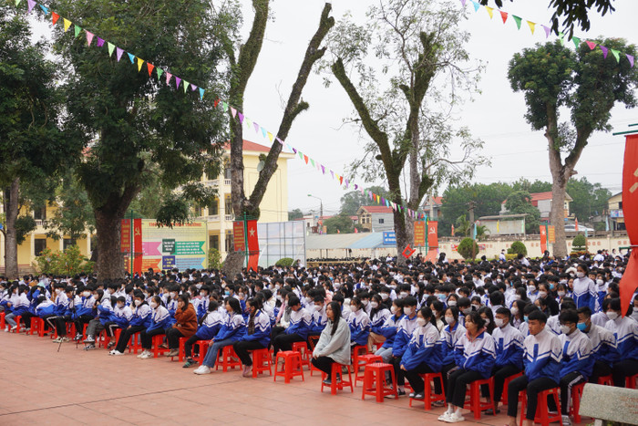| Hơn 1700 học sinh Trường Trung học phổ thông Phú Bình tham gia Hội thảo. Ảnh: Nguyên Phương |