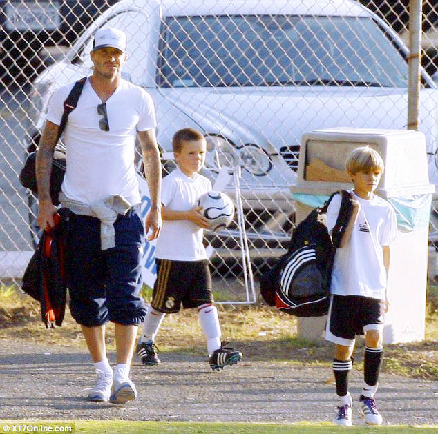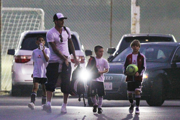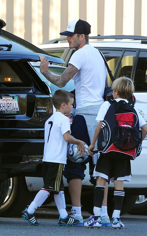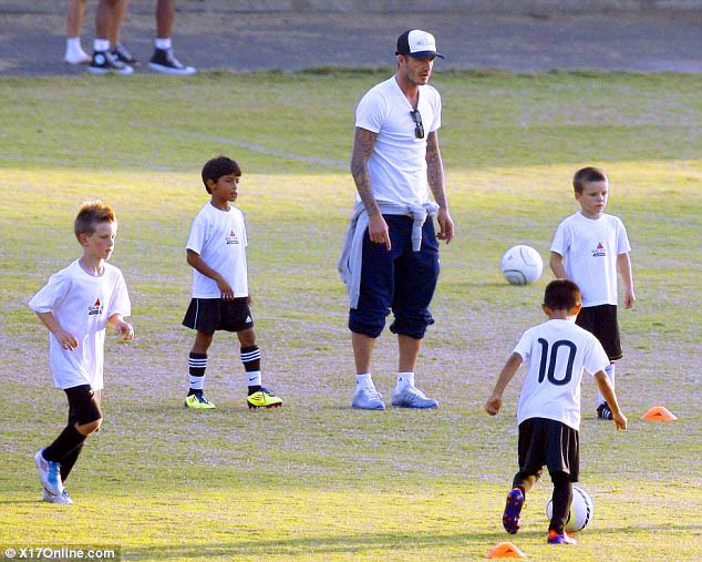 | Becks dẫn 2 quý tử nhà mình đến một trại hè. Tại đây, anh cũng kiêm luôn vai trò huấn luyện |