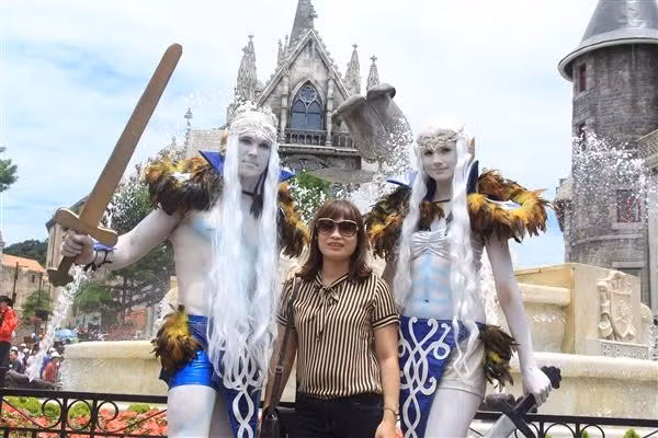 Trong không gian như cổ tích của Khu du lịch Bà Nà Hills, du khách sẽ được hòa mình trong âm nhạc rộn ràng, phấn khích với những màn biểu diễn cà kheo điêu luyện, các pha ảo thuật kỳ thú và thỏa sức thả trí tưởng tượng cùng các nhân vật cổ tích được biến hóa tài tình bằng nghệ thuật hóa trang nhân tượng.