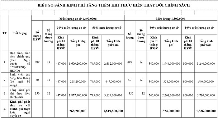 Đồng thời chi phí giá cả sinh hoạt cũng tăng hơn rất nhiều so với năm 2019 khi đề nghị xây dựng Nghị quyết 02. Với mức hỗ trợ theo Nghị quyết 02 hiện nay, không đảm bảo cho học sinh, sinh viên chi trả học phí theo quy định tại Nghị định 81/NĐ-CP và hỗ trợ một phần chi phí học tập cho học sinh, sinh viên.