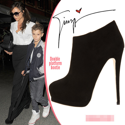 Vic từng 2 lần đi đôi này ra phố. Cô nàng rất trung thành với guốc cao gót kể cả khi bế con gái nặng trĩu một bên tay
