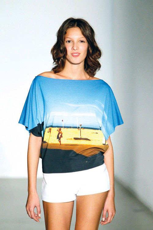 Hình mặt cô gái xinh đẹp trên trang phục đồ bơi. Thiết kế này của Jeremy Scott