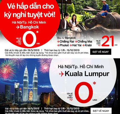 Chương trình bán vé giá siêu rẻ của AirAsia với mức chi phí không mấy khác biệt so với các hãng hàng không giá rẻ trong nước.