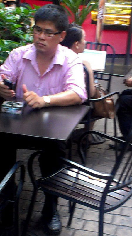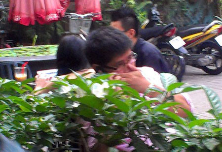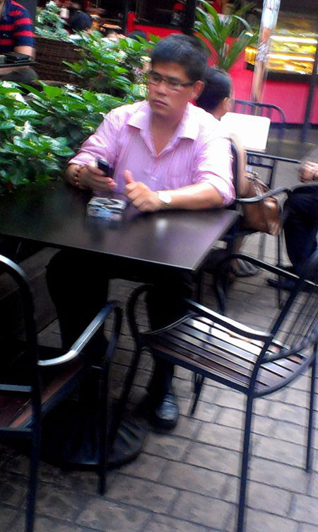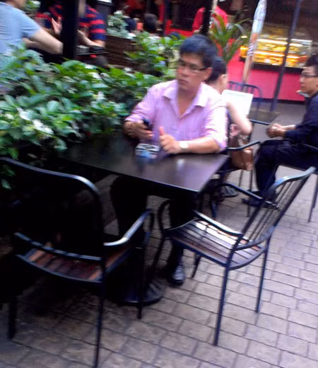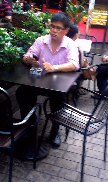 | Phước Sang xuất hiện tại quán cà phê giữa trung tâm thành phố Sài Gòn |