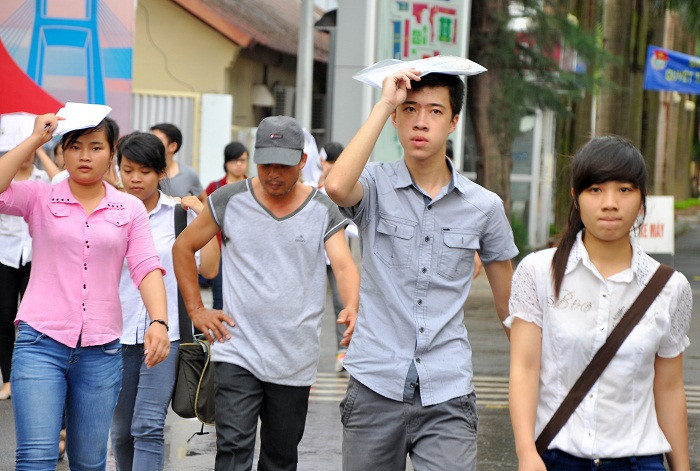 Bác Trần Văn Hóa (Thiệu Hóa, Thanh Hóa) đưa sĩ tử đi thi tại địa điểm trường ĐH Giao thông vận tải (Cầu Giấy, Hà Nội) chia sẻ: “Hai bố con đi thi từ sáng, trưa ở lại nghỉ tại trường. Do buổi sáng có mưa nhỏ, 2 bố con cũng đã phòng bị sẵn áo mưa đi không giờ đứng ngoài trời thì ướt hết”.