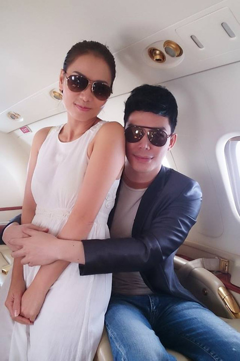 | Nathan Lee chụp hình cùng Thu Minh trên chiếc du thuyền. |