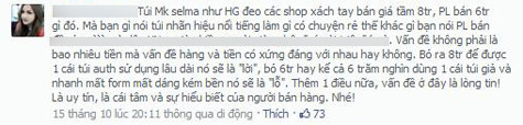 Một độc giả có tên Hen*** Nguyễn đưa ra quan điểm: "Túi Michael Kors bên Mỹ bán 400$ là 8,4 triệu Việt Nam chưa kể phí ship. Vậy mà ca sĩ Pha lê chỉ bán với giá 5 triệu. Nếu nói là bán hàng thật sao không xuất hóa đơn và bằng chứng để cho mọi người xem".