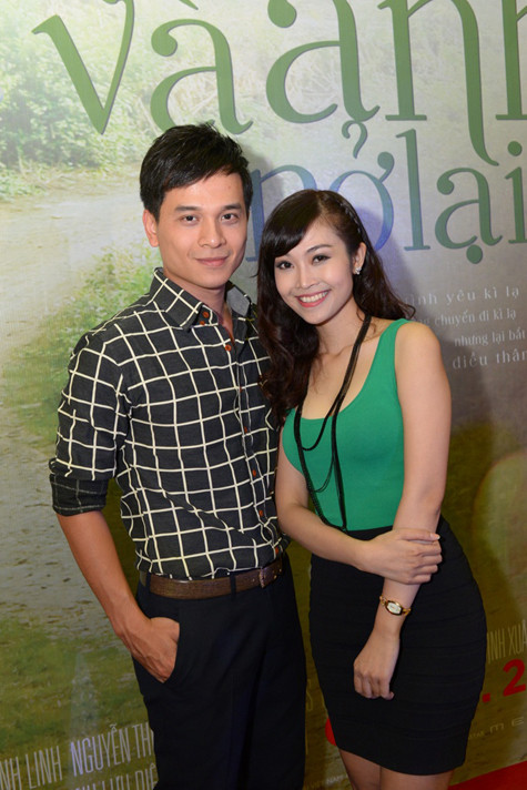 | MC Thùy Linh đóng một vai trong bộ phim nên cũng có mặt trong buổi ra mắt. |