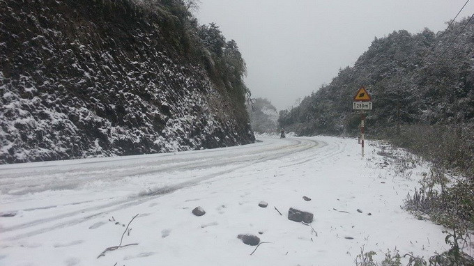 | Tuyết phủ đèo. Ảnh Tuổi Trẻ |