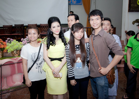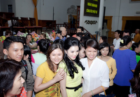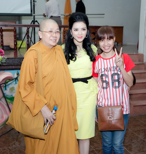 | Trong chiếc đầm vàng của thương hiệu Marchesa, MC Lý Nhã Kỳ xinh đẹp và nhẹ nhàng khiến các phật tử, khán giả không ngớt lời khen ngợi. |