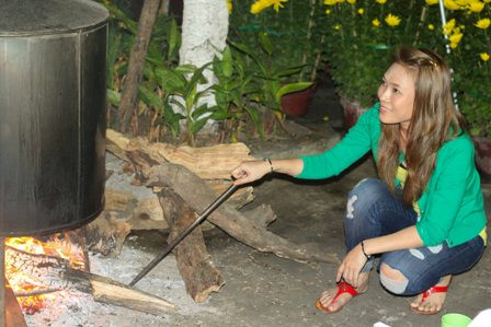 | Không chỉ gói bánh tét rất khéo, Mỹ Tâm còn làm mứt dừa |