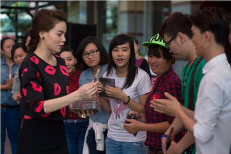 Các fan hâm mộ của vị giám khảo xinh đẹp không giấu được niềm xúc động khi được tận mắt gặp mặt thần tượng. Thậm chí, một bạn trai là fan hâm mộ của Hồ Ngọc Hà trong 5 năm còn bật khóc khi được chọn giao lưu với Hồ Ngọc Hà.