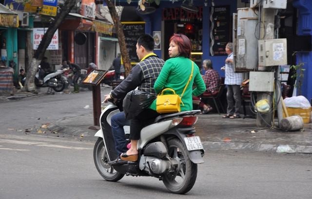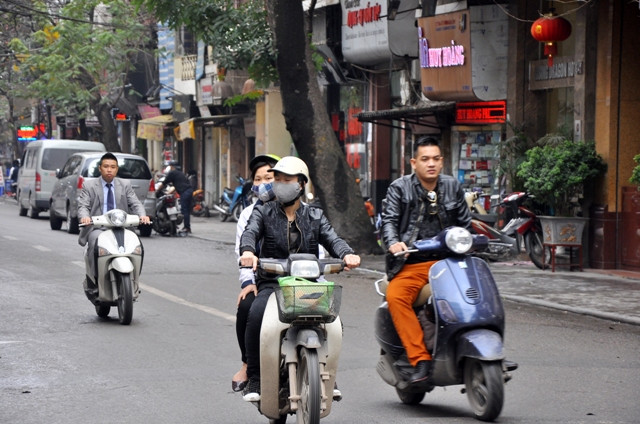 Khác hẳn với sự nghiêm túc khi tham gia giao thông trên các tuyến phố ở thủ đô, khu Phố cổ tình trạng vi phạm giao thông như: không đội mũ bảo hiểm, chở quá hai người, đi ngược chiều… diễn ra dày đặc. Tình trạng này đang biến giao thông ở khu Phố cổ trở nên phức tạp và lộn xộn tiềm ẩn nhiều nguy cơ tai nạn cho người tham gia giao thông.