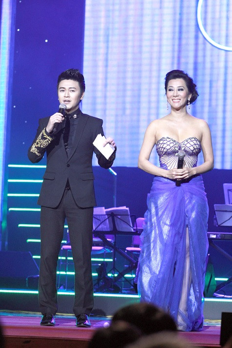 | MC Phan Anh dẫn chương trình cùng Kỳ Duyên trong liveshow Chế Linh |