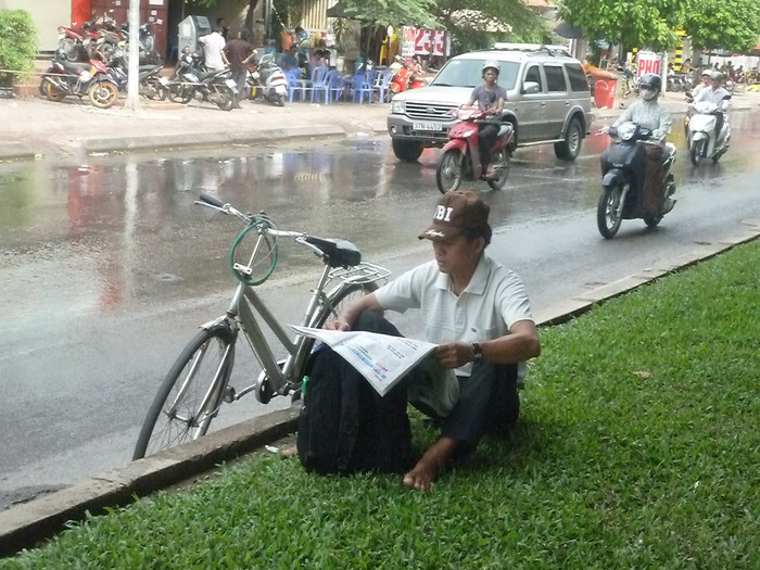 | Tranh thủ nghỉ chân dưới gốc cây |