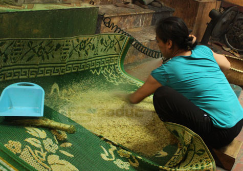 | Và người ta dùng tay, dùng... chổi để quét những hạt cốm này xuống hố cối. |