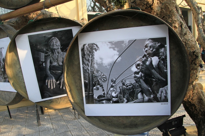 | Bộ ảnh của Huỳnh Anh gây ấn tượng người xem với những bức ảnh đen trắng được "lồng" vào cồng chiêng Tây Nguyên. |