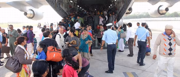 | Ngày 26 tháng 4 năm 2015, máy bay vận tải chiến lược C-17 Không quân Ấn Độ vật chuyển các nạn nhân động đất về New Delhi |