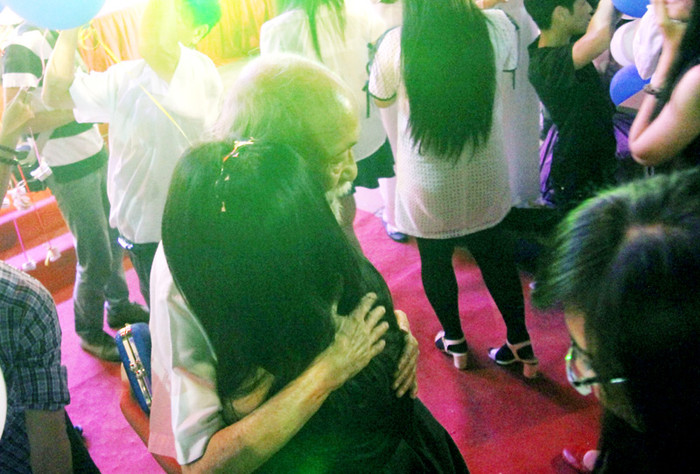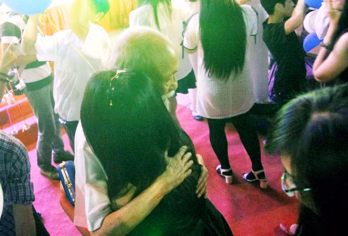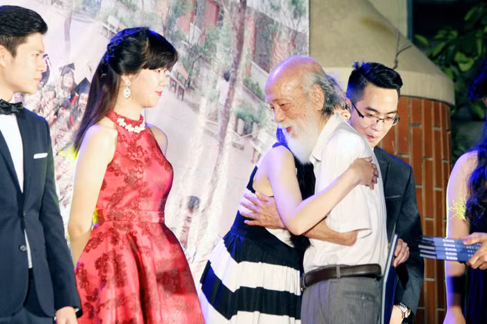 | Trong Lễ tri ân, thầy Văn Như Cương xúc động ôm từng học trò của mình vào lòng và nhắn nhủ những yêu thương, mong các trò thành công trên bước đời sắp tới. |
