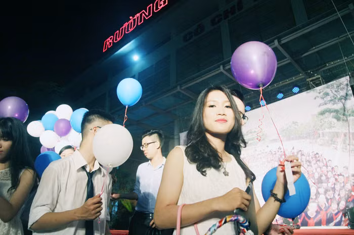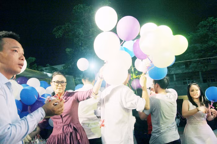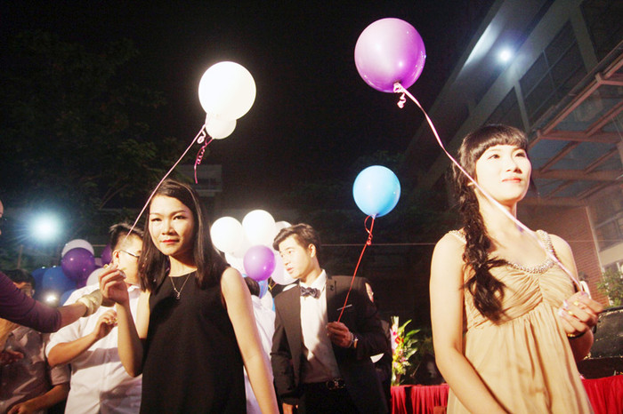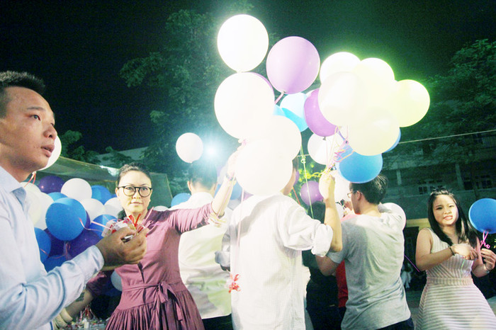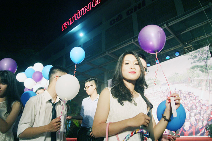 | Trong mỗi chùm bóng bay này là những lời chúc, những lời nhắn nhủ của các em học sinh khóa dưới dành cho các anh chị. |