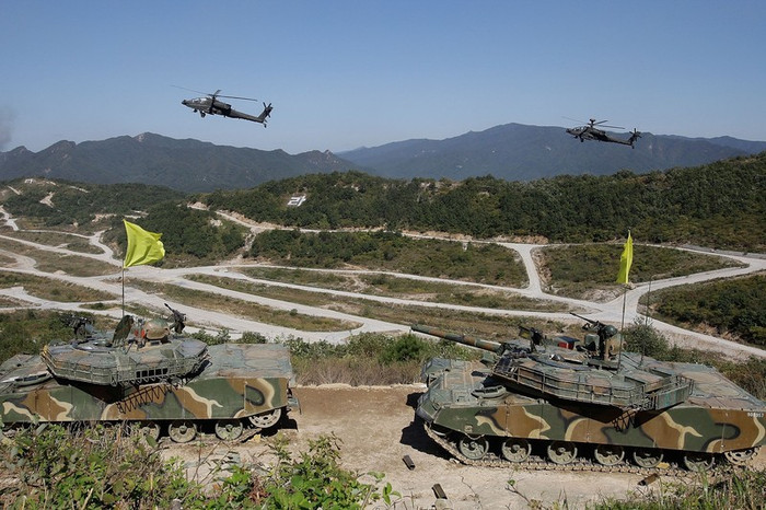 (GDVN) - Liên quân Mỹ - Hàn đã điều động nhiều loại phương tiện quân sự hiện đại, trang bị nhiều hoả lực mạnh như trực thăng AH-64 Apache, tăng K1… tham gia vào cuộc tập trận chung được tổ chức hôm 30/9. Cuộc tập trận tại trường bắn ở Pocheon, gần Khu phi quân sự (DMZ) chia cắt hai miền Triều Tiên này có ý nghĩa: đánh dấu năm thứ 63 Ngày của lực lượng vũ trang Hàn Quốc; củng cố tình đoàn kết giữa Seoul và Washington.