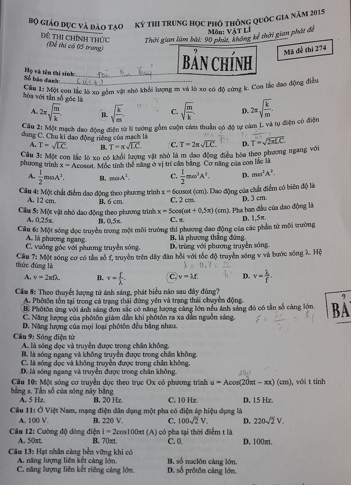 Nhằm đáp ứng nhu cầu của độc giả cũng như thí sinh trong Kỳ thi THPT Quốc gia năm 2015, Báo điện tử Giáo dục Việt Nam phối hợp với Tuyển sinh 247.com sẽ cập nhật liên tục và nhanh nhất lời giải, đáp án các môn thi trong Kỳ thi THPT quốc gia.