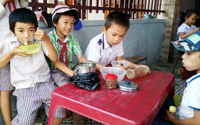 | Có những học sinh vẫn phải mang cơm đến trường (Ảnh: Thủy Phan) |