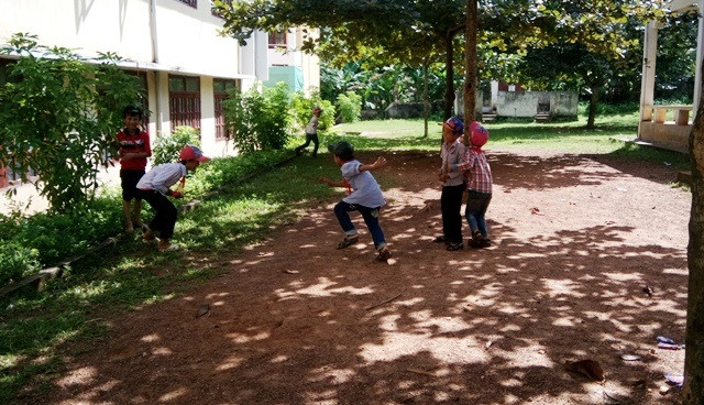 | Ăn cơm xong, nhiều học sinh chơi đùa ở ngoài sân (Ảnh: Thủy Phan) |
