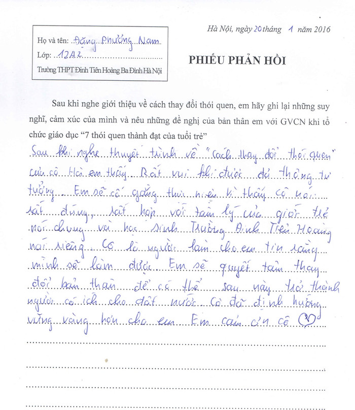 | Thư cám ơn của học sinh dành cho cô giáo Thanh Hà. |