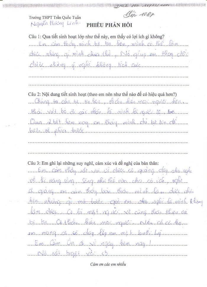 Tuy thời gian triển khai công việc trên chưa dài nhưng kết quả gặt hái ban đầu hết sức bất ngờ. Xin trích dẫn một vài cảm nhận của giáo viên và học sinh: