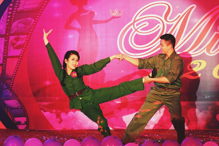 Trong đêm chung kết, các thí sinh thể hiện vẻ đẹp ngoại hình và tài năng. Nhiều gương mặt nhận được sự ủng hộ từ sinh viên trong trường.