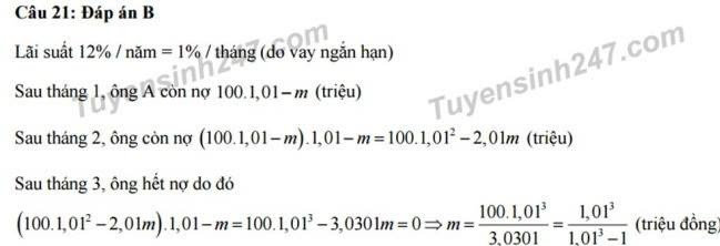 Trong đáp án do trang tuyensinh247.com thực hiện, điểm thứ ba nằm trong dấu bằng cuối cùng. Viết ra có vẻ dễ dàng nhưng người làm đáp án này lại không có lời giải thích rõ ràng cho dấu bằng này.