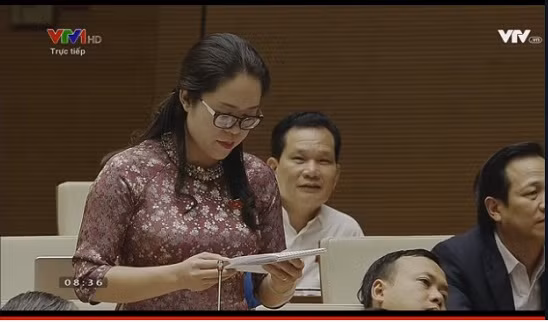 | Đại biểu Dương Minh Ánh (Hà Nội) chất vấn Bộ trưởng Phùng Xuân Nhạ (Ảnh chụp màn hình) |