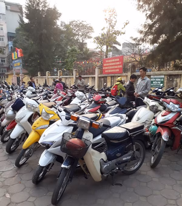 Có mặt tại Trường tiểu học Thái Thịnh lúc 16h30’, đây cũng là lúc tan trường của học sinh nên phương tiện lưu thông qua đây rất đông nhưng việc trông xe vẫn được doanh nghiệp này thực hiện.