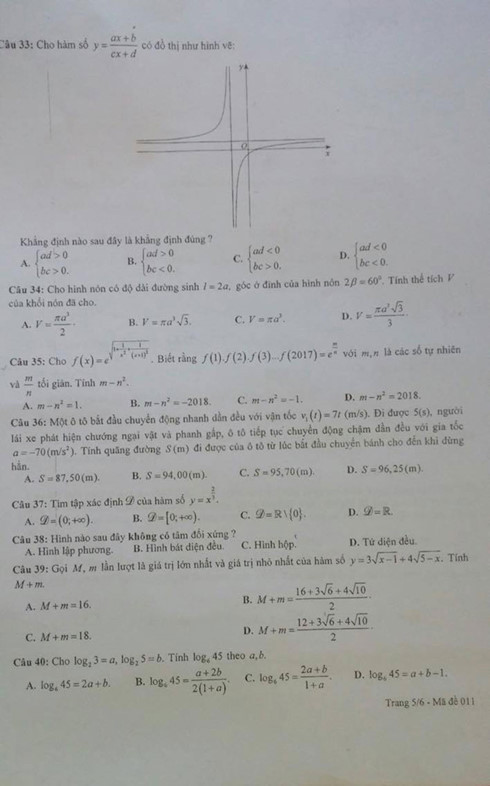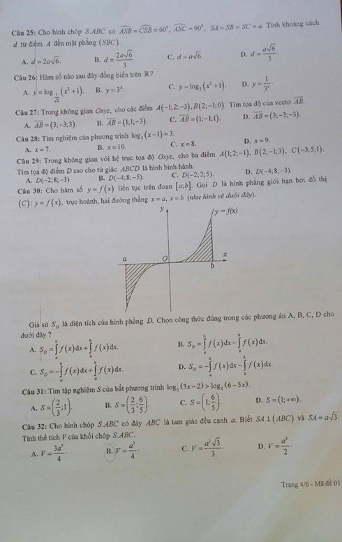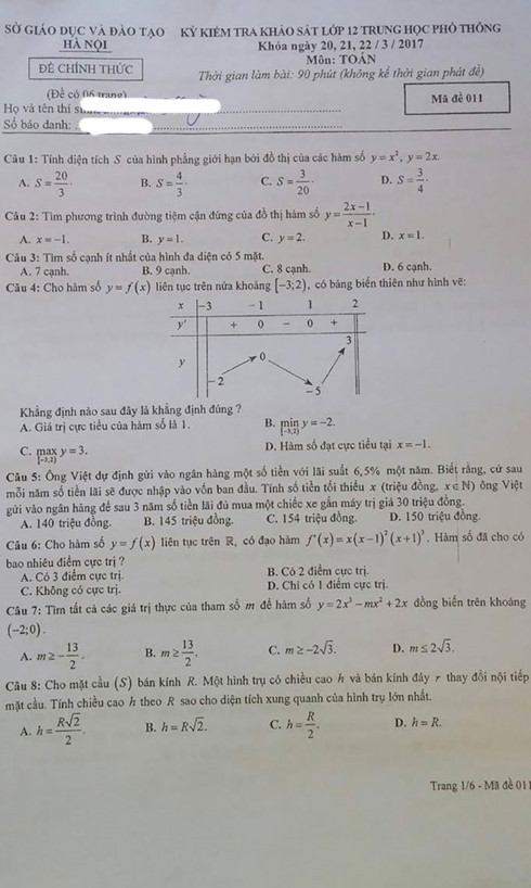 | Đề Toán thi thử quốc gia năm 2017 tại Hà Nội (Ảnh: vov.vn) |