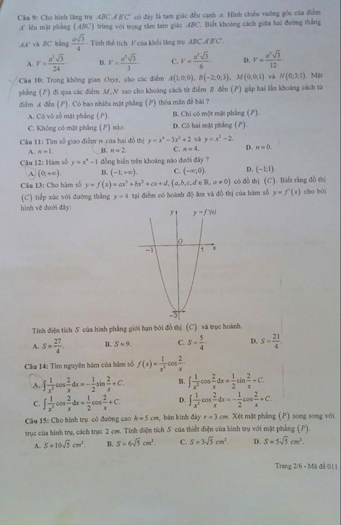 Bên cạnh đó, phần hàm số và tích phân yêu cầu học sinh nắm rất vững định nghĩa và ứng dụng của các phần đó (đã được trình bày trong sách giáo khoa).