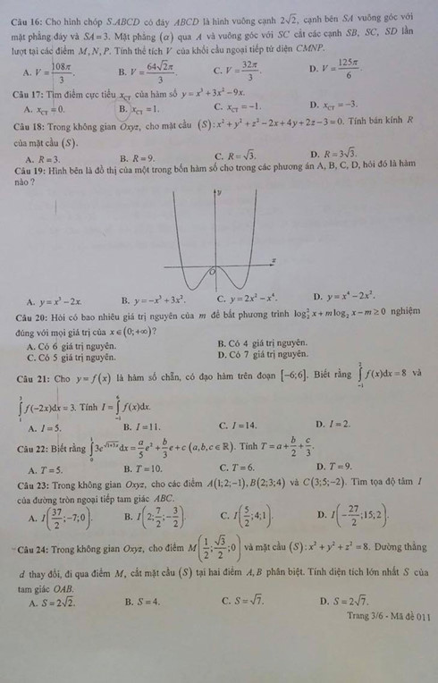 Đề có nhiều câu liên quan đồ thị và sự biến thiên của hàm số, yêu cầu học sinh phải được luyện tập nhiều.